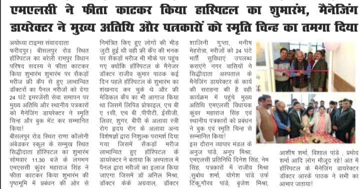 Siddhidata hospital opened on 12/12/2022 by mla Maharaj singh